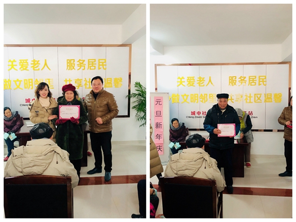 老人夏正才说:“你们把服务站打扮的很隆重,这是对老年人的重视嘛,参加活动不但有奖品,还有跨年蛋糕和我们老人分享,真的是很开心啊!”
